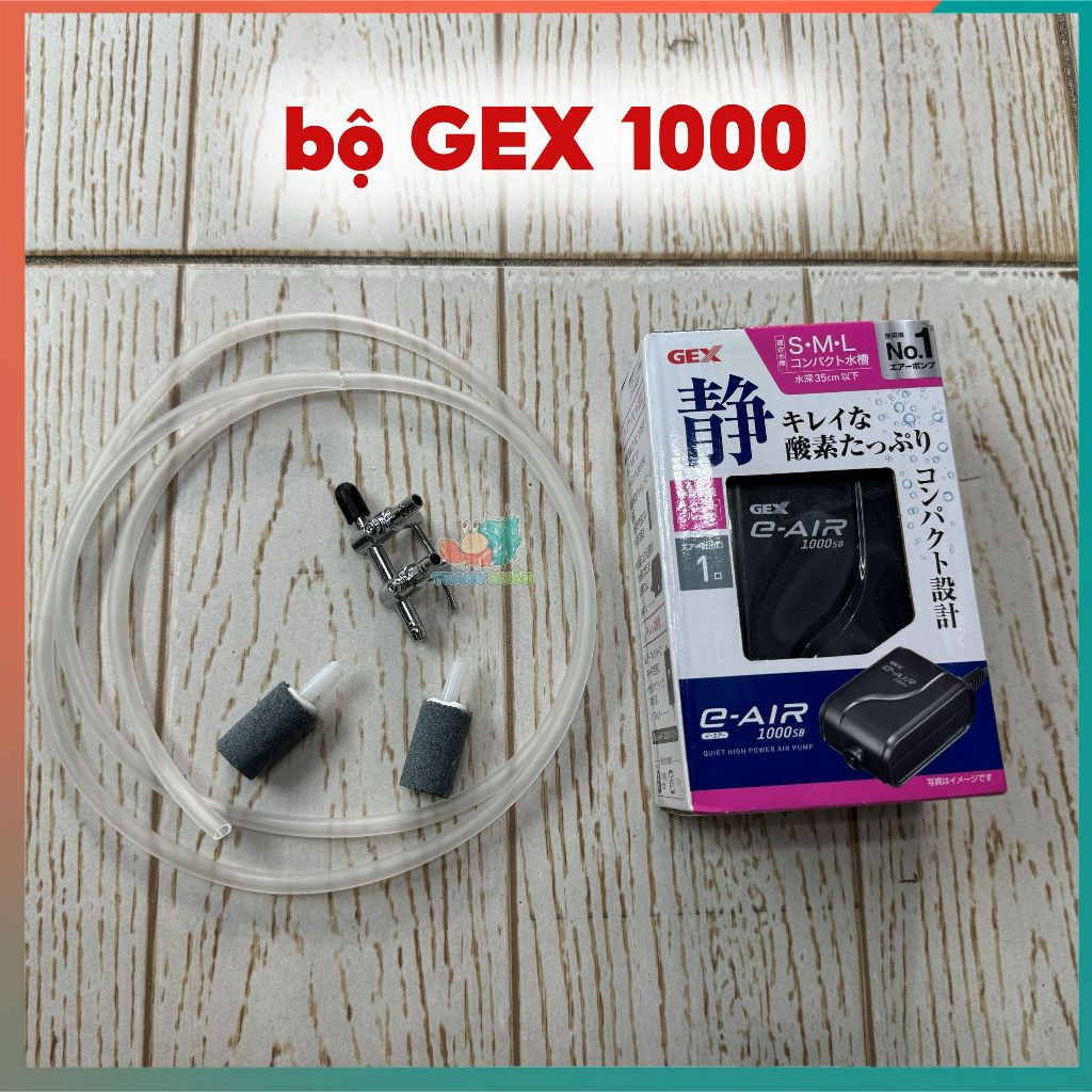 Máy Sủi Oxy GEX E-AIR 1000 | 2000 của Nhật Bản siêu êm ( gần như không có tiếng ồn )- Thương hiệu: GEX- sản phẩm chưa bao gồm dây và quả sủi@ Đặc điểm & Công dụng:- Máy sủi khí Gex E-Air series là bộ oxy cao cấp của Nhật có tác dụng tăng cường khí oxy trong nước. chống chết đuối khi ốc ở dưới nước lâu / tăng oxi cho cá- máy chỉ có 1 lỗ cắm dây nên hãy mua thêm vòi chia đầu bạn nhé . có thể nhắn shop để được hướng dẫn @ Thông số kỹ thuật: Model Kích thước Số vòi Công suất Lưu lượng khí Chỉnh lưu lượng Dùng cho hồGEX-1000SB 78x20x125mm 1 vòi 1.2w 0.8 lít/phút Không ≤ 40cmGEX-2000SB 103x62x160mm 1 vòi 2.4w 0.5-1.5 lít/phút Có ≤ 80cm