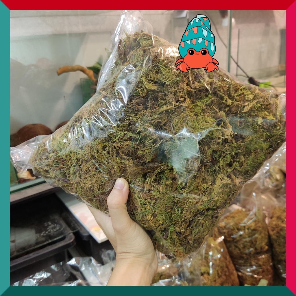 👉Rêu rừng khô lót nền, thức ăn cho ốc mượn hồn 100gram xanh mướt